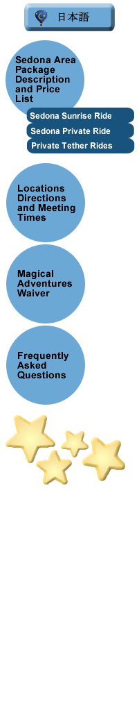 Enjoy a scenic sunrise balloon ride with panoramic views of Sedona, the Verde Valley, San Francisco Peaks and Northern Arizona from launch sites that are licensed and permitted by the Prescott National Forest Service. Sunrise only flights available all year round with FREE pick up and drop off service at Sedona Java Love Cafe. Your experience includes the balloon flight, Champagne toast, continental breakfast, flight certificates and digital photo. $850 for the first two passengers, $200 each additional passenger.